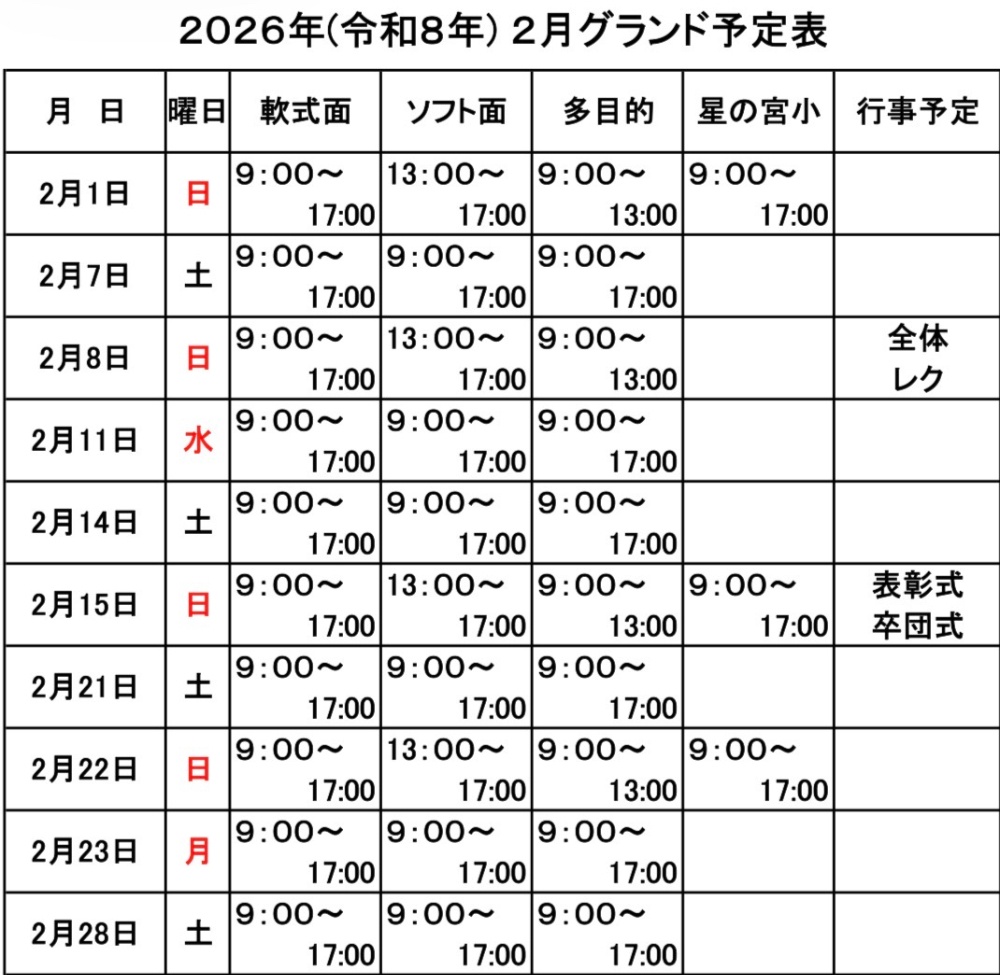 ⚾️グランド予定表⚾️